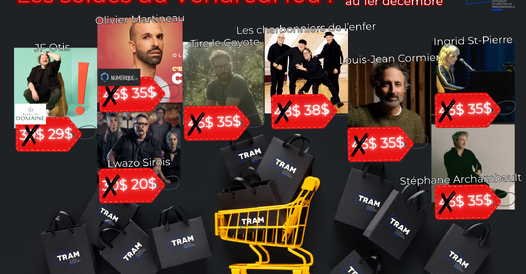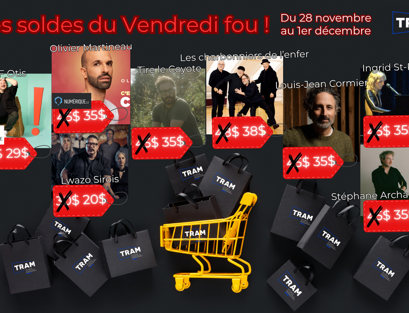NE MANQUEZ PAS LE VENDREDI FOU! 4 jours seulement, du 28 novembre au 1er décembre INCLUSIVEMENT.. EN LIGNE ET À LA BILLETTERIE... Sur 8 spectacles sélectionnés à 10$ de rabais... + 1 qui se rajoute, à un prix qui ne fait pas de sens!
