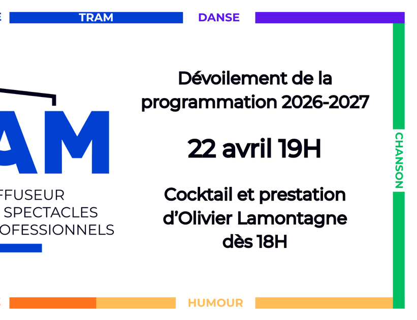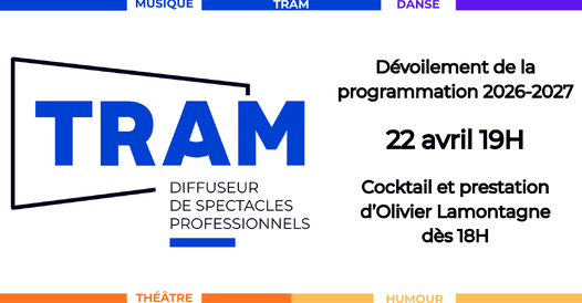 Le comité de spectacles de Thetford Mines (TRAM) est fier de vous annoncer que le dévoilement de sa 39e saison artistique aura lieu le mercredi 22 avril prochain à 19h, à la salle Dussault. Le dévoilement en ligne arrivera à 20h. Par la suite, il y aura une prévente aux abonnés jusqu'au 21 mai. La mise en vente au grand public sera à partir du 22 mai, à 11h, en ligne et à la billetterie.