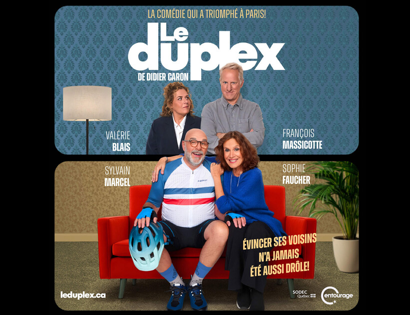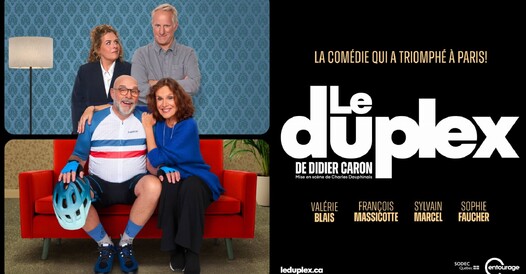 Le Duplex, l'hilarante comédie qui a triomphé à Paris, débarque au Québec pour la toute première fois! Cette pièce de Didier Caron, portée par les excellents comédiens Sophie Faucher, Sylvain Marcel, Valérie Blais et François Massicotte, promet une bonne dose de folie, des éclats de rire... et des voisins qui n'ont rien vu venir!