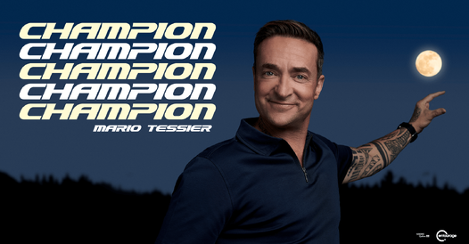 L'humoriste Mario Tessier présente son 3e one-man-show intitulé Champion, alors qu'il est de retour avec l'énergie explosive qu'on lui connait. Champion, c'est un concentré d'humour irrésistible qui mélange autodérision et situations improbables. Dans ce spectacle, Mario affronte ses propres contradictions avec une dose de folie : suivre un entraînement de boxe professionnel juste après une séance de botox, devenir propriétaire d'une jument alors qu'il n'est jamais monté à cheval ou encore se prendre pour un génie alors que... bon, vous voyez le tableau! Avec Champion, Mario met en lumière ce « grand champion » qui sommeille en chacun de nous, celui qui nous pousse à viser plus haut... ou à nous ridiculiser de la plus drôle des façons. Si vous l'aimez à la radio sur Énergie, attendez de le voir sur scène! Il vous fera encore plus rire grâce à son énergie contagieuse, son efficacité comique légendaire et cette tête de vainqueur qu'on ne peut qu'aimer!